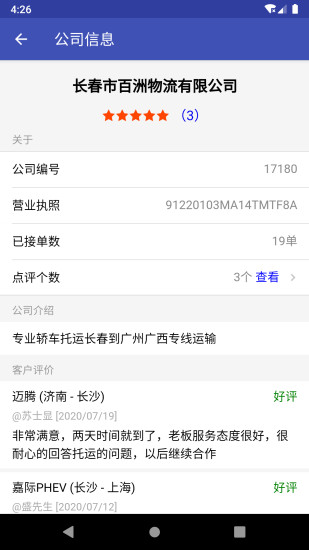 專業(yè)轎車托運(yùn)平臺(tái),三秒獲取汽車托運(yùn)報(bào)價(jià)。運(yùn)車價(jià)格公開、透明,轎車運(yùn)輸滿意后再付款。免注冊(cè),一鍵發(fā)布轎車托運(yùn)信息,專業(yè)汽車托運(yùn)公司直接報(bào)價(jià)、接單。提供上門提車、送車上門,門到門高端私家車托運(yùn)服務(wù)。 車主可以: 1. 使用轎車托運(yùn)APP試算托運(yùn)價(jià)格。 2. 免費(fèi)發(fā)布轎車托運(yùn)需要,等待轎車托運(yùn)公司出價(jià)通知。 3. 查看轎車托運(yùn)公司的出價(jià)。 4. 接受或拒絕托運(yùn)公司的出價(jià)。 5. 點(diǎn)評(píng)轎車托運(yùn)公司的服務(wù)。 轎車托運(yùn)公司可以: 1. 瀏覽待托運(yùn)轎車。 2. 隨時(shí)隨地給車主報(bào)價(jià)。 3. 瀏覽報(bào)價(jià)記錄。 4. 瀏覽客戶已接受報(bào)價(jià)定單。 客服電話:4008896009 官方網(wǎng)站:https://www.ehuoyun.com
