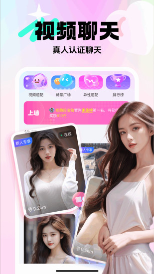 附近想聊單身交友: 是一款陌生人之間語音、視頻、互動的陪聊軟件,在這里你可以找到各式各樣有緣人陪你親密互動、語音聊天,還可以快速匹配TA視頻互動,選擇心儀TA,探尋身邊的有緣人,從語聊開始,遇到讓你一見鐘情的TA,探-探彼此的距離,開始一段心動旅行。 【同城語聊】同城陌生人,3秒匹配,5秒相識,自由選擇線上高顏值陪聊妹妹,陪你線上聊天,默默探尋有趣的靈魂伴侶,隨時隨地和高顏值Ta邂逅聊天,同時軟件會根據(jù)用戶設(shè)置的家鄉(xiāng)信息,匹配您的家鄉(xiāng)好友。 【陌聊速配】 語音聊天,一鍵速配,為無聊的你定制,快速匹配與你相投的有緣人陪你聊天,打造零距離陌生人視頻聊天語音互動,讓你的聊天充滿別樣情趣,找到與你心靈契合的聊天伴侶! 【興趣互動】興趣聊天、情感分享、生活寫實、視頻互動,探索對方興趣愛好和生活動態(tài),喜歡就與TA互動,文字表情語音,想怎么聊就怎么聊,幫你在線找到靈魂聊友。 【真人認證】嚴格用戶審核,真實用戶資料入駐高質(zhì)量人群聚集地,你約聊的TA就是真實的TA。 【禮物傳情】可以給心儀的TA贈送全屏禮物 。在線互動聊天,為你探索對方真實喜好,幫你俘獲她的芳心。 告別尬聊,打造聊天的舒適模式,找到你的專屬陪伴,想怎么玩就怎么玩,更多驚喜等你發(fā)現(xiàn)~ 附近想聊單身交友: 是一款陌生人之間語音、視頻、互動的陪聊軟件,在這里你可以找到各式各樣有緣人陪你親密互動、語音聊天,還可以快速匹配TA視頻互動,選擇心儀TA,探尋身邊的有緣人,從語聊開始,遇到讓你一見鐘情的TA,探-探彼此的距離,開始一段心動旅行。 【同城語聊】同城陌生人,3秒匹配,5秒相識,自由選擇線上高顏值陪聊妹妹,陪你線上聊天,默默探尋有趣的靈魂伴侶,隨時隨地和高顏值Ta邂逅聊天,同時軟件會根據(jù)用戶設(shè)置的家鄉(xiāng)信息,匹配您的家鄉(xiāng)好友。 【陌聊速配】 語音聊天,一鍵速配,為無聊的你定制,快速匹配與你相投的有緣人陪你聊天,打造零距離陌生人視頻聊天語音互動,讓你的聊天充滿別樣情趣,找到與你心靈契合的聊天伴侶! 【興趣互動】興趣聊天、情感分享、生活寫實、視頻互動,探索對方興趣愛好和生活動態(tài),喜歡就與TA互動,文字表情語音,想怎么聊就怎么聊,幫你在線找到靈魂聊友。 【真人認證】嚴格用戶審核,真實用戶資料入駐高質(zhì)量人群聚集地,你約聊的TA就是真實的TA。 【禮物傳情】可以給心儀的TA贈送全屏禮物 。在線互動聊天,為你探索對方真實喜好,幫你俘獲她的芳心。 告別尬聊,打造聊天的舒適模式,找到你的專屬陪伴,想怎么玩就怎么玩,更多驚喜等你發(fā)現(xiàn)~