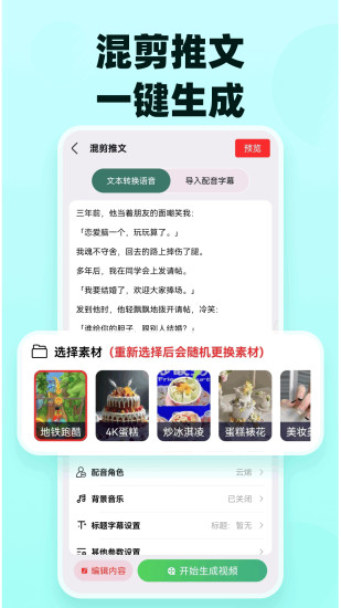 推文助手是一個專注于小說推文創(chuàng)作與變現(xiàn)的服務(wù)平臺;同時我們也提供強大的短視頻創(chuàng)作功能,依托素材加工具的模式,輕松玩轉(zhuǎn)爆款流量,讓創(chuàng)作與變現(xiàn)更簡單 特色功能 【推文工具箱】 文章提取、改編,素材去重,封面制作等等,各種快捷工具,極大的縮短您的創(chuàng)作時間。 【短視頻創(chuàng)作工具】水印處理、音頻字幕提取、封面制作、個性化配音等視頻創(chuàng)作功能。 【多元化素材庫】素材推文、推文視頻二創(chuàng)、AI漫畫推文,對話、表情包、圖文、評論區(qū)推文等等,海量熱門素材庫,滿足您多種內(nèi)容需求,讓您的推文脫穎而出。 【操作簡單】 利用先進AI技術(shù),一鍵剪輯編輯推文內(nèi)容,0基礎(chǔ)也能出爆款。 【去重率高】 獨特和持續(xù)的素材創(chuàng)新,讓您不再擔心因為重復內(nèi)容而降權(quán)。 【變現(xiàn)簡單】針對推文表現(xiàn)場景,提供海量推文素材,只需簡單操作,便可完成推文視頻制作。
