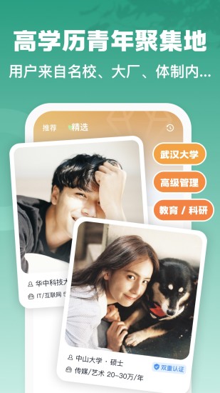 真誠/可靠/溫暖/走心 起源于武大、華科的脫單交友平臺。上線以來,已幫助千萬青年建立社交連接,數十萬年輕人在此收獲愛情。我們相信:不愿將就的你,值得遇見同樣優秀的ta。交際圈窄、沒有時間、受夠了無效的網絡社交,來真誠/可靠/溫暖/走心的青藤之戀,開始一段高質量關系吧。 【身份學歷認證,資料嚴審】 確保對面的TA真實可靠,我們認為必要的“門檻”是“真誠”的前提。 【每日精準推薦】 大廠青年、名校畢業生、斜杠青年、醫生… 推薦符合你要求的異性,照片+文字+語音,個人資料豐富立體。 【雙向喜歡才能開啟聊天】 沒有噪音和打擾,我們認為好的關系一定是一場“雙向奔赴”。 【村口社區,安放靈魂】 在這里你的疑惑有人解答,你的表達有人傾聽,成長這條路上,大家相伴而行。