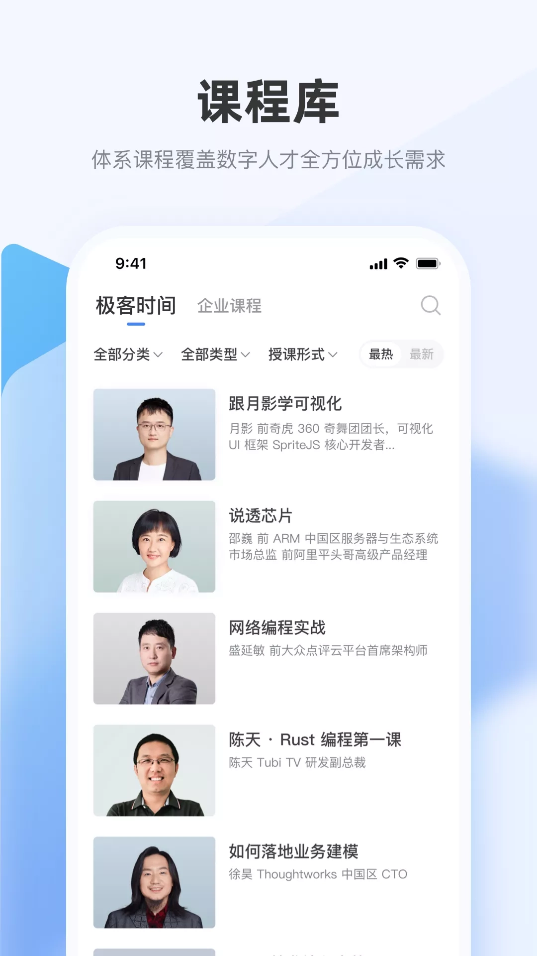 官方版本升級,全新功能,快來體驗! 極客時間 APP,程序員突破自我必備的一款學習神器。 Google、Facebook、阿里、騰訊等大廠大咖授課 算法、架構、前端、Java、Linux、機器學習、黑客增長、產品…… 有目的提高職場核心競爭力,打破升職加薪天花板。 百門好課,最低只需1元。 「大牛親授經驗,名企面試真題 」 IT 這個行業的一條簡單粗暴的規則,就是技術越強,薪資越高。每天10分鐘的專欄、視頻課,攻克日常工作中讓人頭疼的難點,0基礎的小白也可以學習。 「 獨家干貨分享,揭秘行業猛料 」 Google、Facebook、阿里、騰訊等大廠大咖授課,晉升法則,變現規律,面試技巧,加薪秘籍,專業知識,聽聽這些一線專家們都怎么做。 「名企內推,共享面試經驗 」 工作效率低下,重復無聊,想通過學習編程來改變自己現在的狀態,那就別猶豫了,給自己一個彎道超車,為蛻變找到捷徑,獲得高薪待遇。 學習中如有任何疑問,可以隨時聯系我們。 客服通道:極客時間服務號