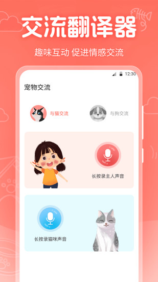 貓狗語翻譯交流器全新改版上線啦??! 你家主子在想什么?貓狗語翻譯交流器為你解答,及時將你的聲音變換成貓語翻譯,獲得貓貓的注意力,聆聽貓貓的翻譯心神貓貓助手。憑借對超過100只貓貓的超過100高品質采樣,人貓交流器也能將它打動。 1、您還在擔心喵星人和汪星人不愿意親近您? 即時將你的聲音變換為貓語和狗語,獲得貓咪和狗狗的注意力。 2、通過多種貓咪和狗狗叫聲的采樣,即使是脾氣火爆、性格乖戾的貓咪,人貓語狗語交流翻譯器也能將它打動。 3、人貓語狗語交流翻譯器會真正對你的聲音進行音頻分析(真的如此)并根據你的輸入復述出貓和狗的叫聲。 4、人貓語狗語交流翻譯器會真正對貓和狗的聲音進行音頻分析(真的如此),并且預測出貓和狗想表達的意思,并且翻譯成人語。 馬上下載,立即加入我們的鏟屎圈吧! 注:貓語翻譯、狗語翻譯是虛擬功能,僅供娛樂