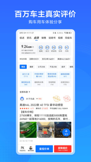 汽車報價﹣覆蓋全國各地政策補貼和廠商補貼,一站獲得所有優惠! 【0元抽半價車】每天抽獎一臺半價車機會,每晚22點開獎; 【查成交價買貴必賠】集合上千萬條真實用戶的成交價,每日2萬余條實時更新;報名參加買貴必賠活動,買貴最高賠5000元; 【政府/廠商補貼一站集齊】匯集當下政府補貼、品牌新車補貼、品牌置換補貼、平臺優惠、4S店優惠,讓您一站獲取所有優惠; 【最強省錢攻略】匯總線上線下買車返現信息,手把手教你領取補貼,不錯失任何一個領取優惠的機會; 【實用、準確的選車看車工具】16年數據積累,為您提供高效、便捷的選車功能,幫您快速找到您心目中的理想車;只需簡單幾步,就能讓您了解到車輛的全部信息。