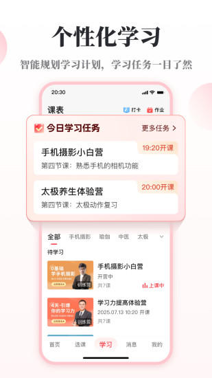 【功能介紹】 一站式學習交友平臺! 1、課程學習:視頻可下載到本地,支持投屏,隨時隨地學。 2、每日直播:老師直播教學,親自指導包教包會。 3、發帖活動:參與熱門主題活動,話題討論,與社區同好分享交流,共同進步。 4、電臺聽書:有聲電臺干貨分享,涵蓋健康科普、情緒疏導、人際關系、冥想等板塊。 5、互動工具:唱歌練習、功法練習、答題PK。 6、興趣俱樂部:以歌會友、太極強身、攝影交流、瑜伽塑形,結識同頻好友,充實退休生活! 【為什么選擇興趣島】 1、規模更大:綜合興趣學習平臺學員數全國領先。 2、名師更多:索尼特聘攝影講師潘慶華;中國中醫藥信息研究會主任迷羅;五行經絡瑜伽創始人楊淇;武漢美吉醫院維養中心院長王溪;中央民族樂團女中音歌唱家&國家一級演員宋伶俐;武當玄武派第十四代傳人李在峰等千位名師。 3、課程更全:覆蓋太極,瑜伽,唱歌,手機攝影,穿搭,廚藝,體態,食養健康,相機攝影,舞蹈,書法,國畫,短視頻,營養,朗誦,兒童健康,中醫變美,睡眠調理,普拉提,茶道,風光攝影,易筋經,五禽戲等30多門課程。 【合作伙伴】 騰訊百度抖音三大平臺教育戰略合作伙伴 曾獲得騰訊等知名機構多輪投資